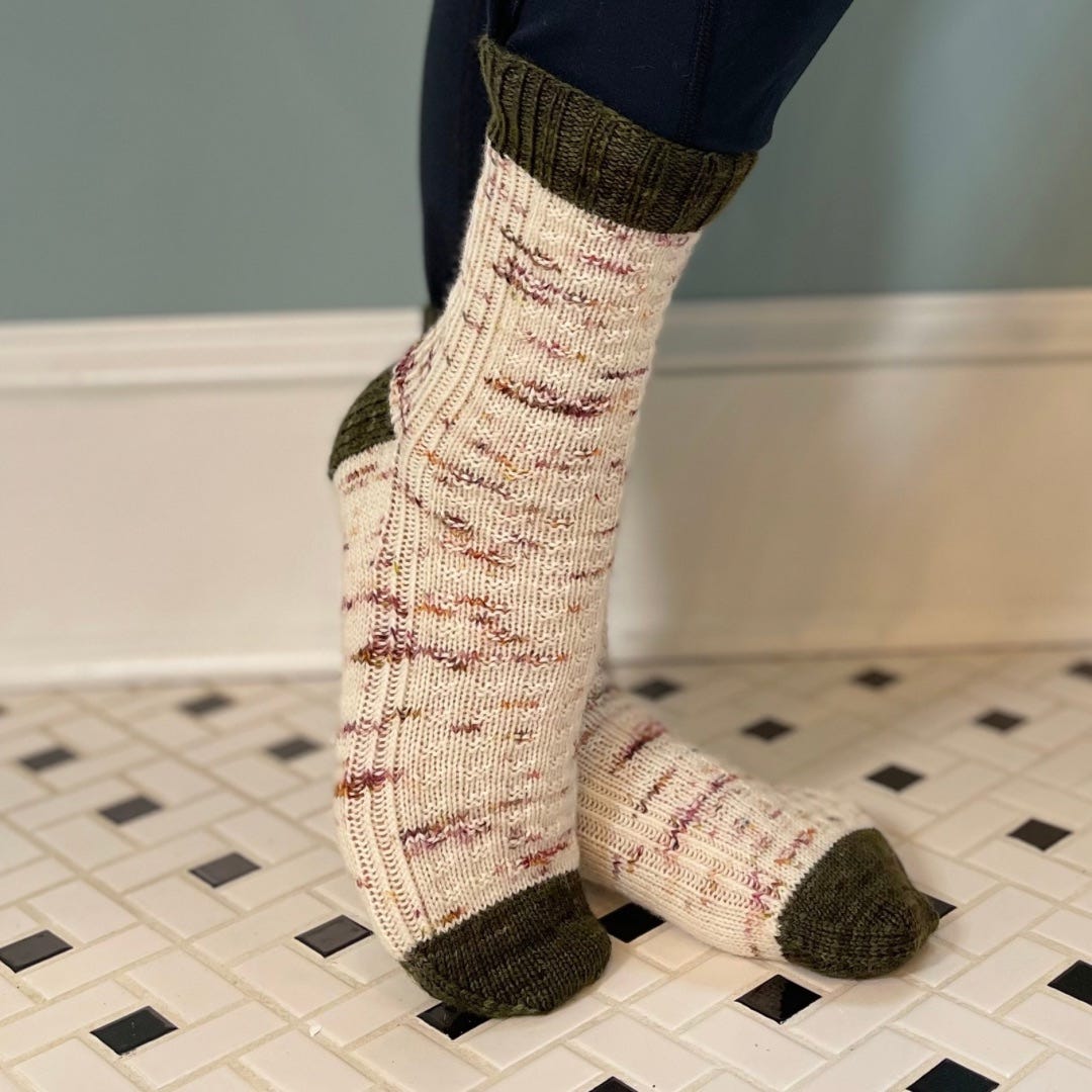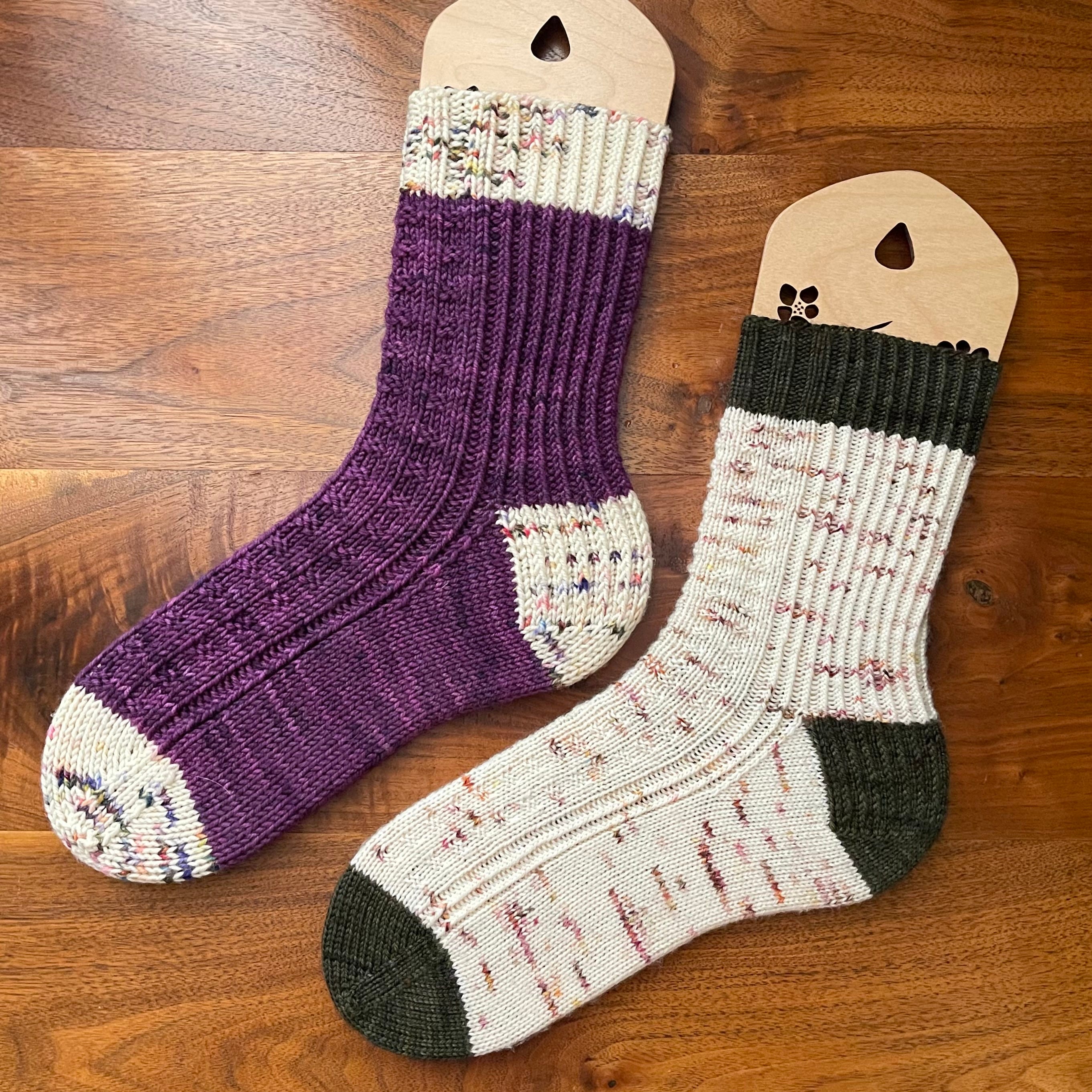 As you can see, this pattern is designed for BOTH fingering weight AND DK weight sock yarn!
